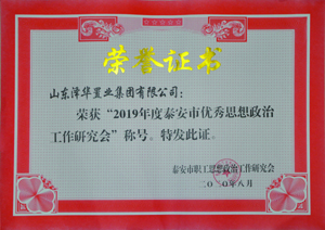 近日,山東澤華置業(yè)集團有限公司被泰安市職工思想政治工作研究會授予“泰安市優(yōu)秀思想政治工作研究會”榮譽稱號。