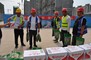 炎炎夏日 驕陽似火,奮戰(zhàn)在項目現(xiàn)場的一線職工迎來今夏“烤”驗,為切實把公司的關(guān)心關(guān)懷關(guān)愛送到一線、送進基層,6月11日,集團公司開展“夏送清涼”活動,集團工會主席徐加東,集團副總經(jīng)理、中房建工經(jīng)理彭煥利,集團副總經(jīng)理、中房建工黨支部書記馮傳波,中房建工副經(jīng)理張曉東、趙飛,中房建工相關(guān)科室以及各施工項目部參加慰問活動。