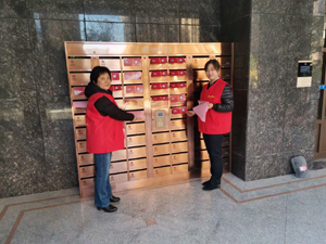 早上八點半,紅色管家與紅色樓長領取《致社區(qū)居民的一封信》與《消防安全宣傳手冊》等相關宣傳材料。隨后,各位紅色樓長、紅色管家走入小區(qū),給居民發(fā)放宣傳材料;走進樓宇挨家挨戶發(fā)放消防手冊;在樓宇門口信箱投放材料,把消防知識傳遞給小區(qū)居民。