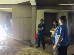 驗(yàn)收人員對(duì)基礎(chǔ)剪力墻混凝土強(qiáng)度進(jìn)行現(xiàn)場(chǎng)回彈,對(duì)原材料送檢、施工技術(shù)交底等情況進(jìn)行現(xiàn)場(chǎng)檢查,結(jié)合設(shè)計(jì)單位、勘察單位意見,各項(xiàng)檢查均滿足規(guī)范和設(shè)計(jì)要求,同意進(jìn)行后續(xù)施工。(周陽(yáng))