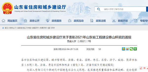 為深入貫徹習(xí)近平新時(shí)代中國(guó)特色社會(huì)主義思想,扎實(shí)推進(jìn)質(zhì)量強(qiáng)企和品牌戰(zhàn)略,充分發(fā)揮優(yōu)質(zhì)工程示范引領(lǐng)作用,山東魯房置業(yè)有限公司參與了2021年山東省工程建設(shè)泰山杯獎(jiǎng)評(píng)選活動(dòng)。經(jīng)公司初步申報(bào)、逐級(jí)推薦、集中評(píng)選和社會(huì)公示,東城田園第一園B區(qū)項(xiàng)目獲得山東省工程建設(shè)“泰山杯”獎(jiǎng)(開發(fā)建設(shè)類)。