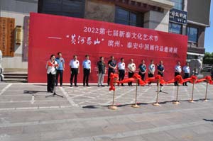 唐家品主席、李瑞平主席、蘇永濤主任、田希婷主席、孫黎主席、李玉泉主席、孫成剛主席、周典紅部長(zhǎng)為開幕式進(jìn)行了剪彩儀式,2022第七屆新泰文化藝術(shù)節(jié)--“黃河泰山”濱州、泰安中國(guó)畫作品邀請(qǐng)展盛大開幕。