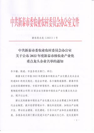 2022年,惠魯農(nóng)業(yè)公司按照澤華集團(tuán)總體部署和工作要求,不斷建立和完善現(xiàn)代企業(yè)制度,提升經(jīng)營管理水平,強(qiáng)化科技創(chuàng)新,加快全產(chǎn)業(yè)鏈開發(fā),帶動農(nóng)業(yè)增效、農(nóng)民增收,引導(dǎo)鄉(xiāng)村產(chǎn)業(yè)和農(nóng)業(yè)高質(zhì)量發(fā)展。公司經(jīng)過新泰市農(nóng)業(yè)農(nóng)村局調(diào)研審核,專家評審等程序,被評為新泰市級農(nóng)業(yè)產(chǎn)業(yè)化重點(diǎn)龍頭企業(yè)榮譽(yù)稱號。