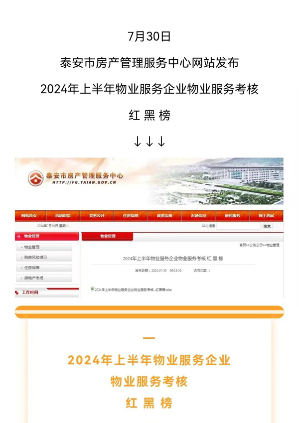 7月30日,泰安市房產(chǎn)管理服務(wù)中心發(fā)布泰安市2024年上半年物業(yè)服務(wù)企業(yè)物業(yè)服務(wù)考核紅黑榜,新泰市華通物業(yè)管理有限公司榮登紅榜,物業(yè)服務(wù)榮獲優(yōu)秀等級。