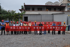 在集團工會主席王功隨的陪同下,街道工會領(lǐng)導(dǎo)一行三人,來到清華園施工項目現(xiàn)場開展走訪。走訪過程中,張主席詳細了解了一線農(nóng)民工的工作和生活情況,并現(xiàn)場答疑解惑,幫助解答農(nóng)民工在工作和生活中遇到的各類問題,耐心指導(dǎo)農(nóng)民工通過手機掃碼實名認證的方式入會,并為一線員工送去了面粉、醬油、食醋等物品,共計200份。通過這次活動,讓農(nóng)民工們了解到工會的職能職責(zé),大大激發(fā)了農(nóng)民工加入工會的熱情。