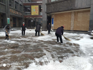 工作人員熱火朝天、干勁十足的掃雪身影得到了許多路過(guò)業(yè)主的表?yè)P(yáng)和贊賞,業(yè)主的肯定和贊許,更增添了員工們雪中奮戰(zhàn)的激情和動(dòng)力。(張遷)