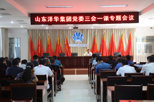 6月18上午,在山東澤華集團(tuán)二樓會(huì)議室召開澤華集團(tuán)黨委“三會(huì)一課”專題會(huì)議,參加會(huì)議的有集團(tuán)公司全體黨員及中層以上管理干部,會(huì)議由集團(tuán)公司黨委書記田清坤主持召開。會(huì)上學(xué)習(xí)了習(xí)近平同志“新時(shí)代中國(guó)特色社會(huì)主義思想”。