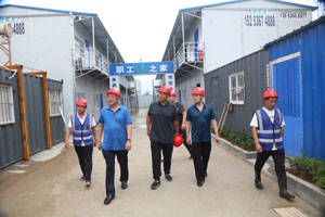 7月3日上午,山東澤華集團(tuán)董事長、總經(jīng)理王成喜,中房建工副經(jīng)理趙亮,親臨集團(tuán)公司泰安學(xué)府春天桃李園重點項目,在炎炎夏日,為奮戰(zhàn)在生產(chǎn)一線的職工送去一份誠摯的關(guān)懷。集團(tuán)領(lǐng)導(dǎo)首先查看了施工現(xiàn)場,對施工項目進(jìn)展情況進(jìn)行詳細(xì)詢問;然后對職工宿舍、食堂等生活設(shè)施進(jìn)行詳細(xì)了解。集團(tuán)公司董事長、總經(jīng)理王成喜要求,要在保質(zhì)保量完成施工項目的基礎(chǔ)上,加快工程建設(shè)進(jìn)度,強化安全意識、精品意識、工期意識,高標(biāo)準(zhǔn)建設(shè),嚴(yán)控工程施工節(jié)點;要以本次外出施工為契機,學(xué)習(xí)先進(jìn)經(jīng)驗和做法,進(jìn)一步拓展工作思路,不斷提升外出施工管理能力和水平。并強調(diào),要關(guān)心、關(guān)愛職工日常生活,合理調(diào)整工作時間,做好后勤保障,注意勞逸結(jié)合,為一線職工提供一個更加舒適的工作生活環(huán)境。