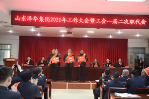 2021年2月3日上午,在集團公司二樓會議中心,召開山東澤華集團2021年工作大會暨工會一屆二次職代會。出席本次會議的領導有市財政局副局長崔登斌、青云街道辦事處主任馬桂前、青云街道黨工委委員張超、工委主席牛均亮、經濟發展辦公室主任程月勇、經貿科科長夏振華。參加今天會議的還有集團公司領導班子、各公司領導班子、全體管理人員、項目經理、華通物業相關負責人、潤發建工企業代表。大會由集團黨委書記田清坤同志主持召開。