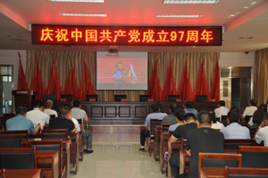 6月30日上午9點,山東澤華置業集團有限公司組織全體黨員在公司二樓會議室觀看了《初心?聲動新泰---慶祝中國共產黨成立97周年暨聆聽最美黨員故事主題黨日》視頻會議。參加視頻會議的領導有:山東澤華集團董事長、總經理張新汶,黨委書記田清坤,副總經理牛洪起、王成喜、周建根、朱艷華;參加會議的還有澤華集團全體黨員。