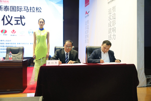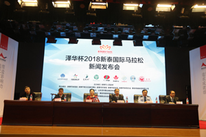 10月8日, “澤華杯”2018新泰國際馬拉松新聞發布會在泰安召開。本次賽事是由新泰市人民政府主辦,新泰市體育局、新泰市青云街道辦事處、新泰市環保局、新泰市旅游局、新泰市體育總會、泰安傳媒體育有限公司承辦,山東澤華置業集團有限公司全程冠名。新泰市人民政府副市長周典紅,新泰市政府應急辦公室副主任劉祿新,新泰市體育局黨委書記、局長韓春華,新泰市公安局黨委副書記楊德軍,泰安傳媒集團副總經理徐國新,山東澤華置業集團有限公司黨委書記田清坤出席了新聞發布會。