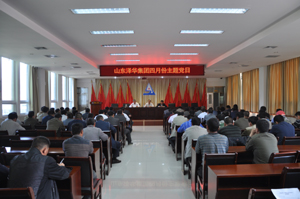 4月24上午九點,在山東澤華集團二樓會議室召開四月份“主題黨日”活動。參加會議的領導有集團公司董事長、黨委副書記張新汶;黨委書記田清坤;黨委委員、中房建工支部書記牛洪起;黨委委員、魯房置業支部書記王成喜;黨委委員、紀委書記周建根出席會議,參加會議的還有各分公司副經理、全體黨員及黨務工作者。會議由集團公司黨委書記田清坤主持召開。