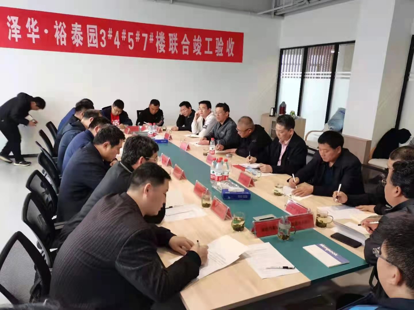 會(huì)議首先由王成朋同志代表集團(tuán)公司對(duì)各級(jí)領(lǐng)導(dǎo)的到來表示熱烈的歡迎,并對(duì)集團(tuán)公司長久以來的關(guān)心和支持表示衷心的感謝,然后由項(xiàng)目參建負(fù)責(zé)人就項(xiàng)目建設(shè)各項(xiàng)情況向與會(huì)領(lǐng)導(dǎo)進(jìn)行了詳細(xì)匯報(bào)和說明,各驗(yàn)收單位通過查驗(yàn)現(xiàn)場(chǎng)、查閱驗(yàn)收資料等方式對(duì)裕泰園3#4#5#7#樓進(jìn)行了驗(yàn)收,并對(duì)裕泰園項(xiàng)目建設(shè)各項(xiàng)工作進(jìn)行高度贊揚(yáng)和充分肯定。