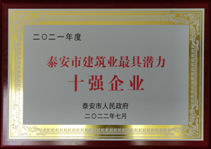2022年9月15日,為促進全市建筑業高質量發展,進一步提升建筑業發展水平,根據《泰安市人民政府辦公室關于印發促進建筑業高質量發展十條措施的通知》(泰政辦字【2021】44號)文件精神,中房建工被泰安市人民政府辦公室表彰為泰安市建筑業最具潛力十強企業。(喬田利)