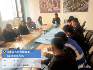 4月9日,裕泰園16#、18#和地下車庫人防設計技術交底及施工圖圖紙會審,在裕泰園營銷中心三樓會議室舉行,新泰市人民防空保障中心主任王明新、副主任劉花、南京優佳建筑設計有限公司建筑專業負責人安帥、結構專業負責人劉傳玲、暖通專業負責人張國棟,山東中房建筑工程有限公司副經理馮傳波、山東魯房置業有限公司副經理田茂鵬出席會議。魯房置業開發部、中房建工項目部、山東人和項目管理有限公司、山東永安消防工程有限公司相關負責人參加會議。