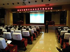 2018年1月10日,市中一建公司參加市建管局組織的在榮峰大酒店舉辦的新泰市建筑行業安全員專題培訓班,本次培訓班由建管局副局長劉曉主持,由濟南四建安全處長彭強主講。公司副經理徐加東、安全設備部、各項目部項目經理、安全員共計54人參加培訓學習。