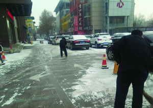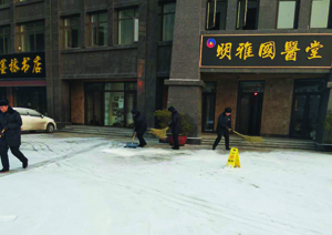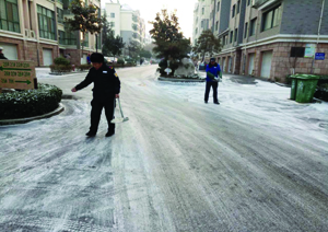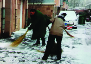 景觀綠化上的積雪給人賞心悅目的感覺,但是道路上的積雪卻讓人頭痛,走路怕滑倒,騎車怕溜車,很是無奈。于是華通物業公司各小區管理處工作人員為了保障各位業主們的出行安全,組織人員進行小區內道路積雪清掃工作。今天剛剛上班的時候保安、保潔、綠化等工作人員全部出動,手持大掃帚、鏟子在道路上進行積雪的清掃,有上凍的情況就用鏟子清理,保證了道路的通暢,保障了業主們的出行安全。(張遷)