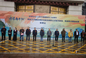 金秋送爽迎華誕,彩墨飄香舞平陽。為熱烈慶祝中華人民共和國成立76周年,積極踐行國家藝術基金繁榮藝術創(chuàng)作、打造和推廣原創(chuàng)精品力作、培養(yǎng)美術藝術創(chuàng)作人才、推進國家藝術事業(yè)健康發(fā)展的宗旨,促進泰安市文化藝術交流和傳播,展示基層文化事業(yè)發(fā)展成果,10月12日上午,“彩墨舞平陽”·國家藝術基金項目文獻及資助藝術家馮曉東、高波美術精品巡展(新泰站)開幕儀式在新泰文化藝術城隆重舉行。
