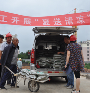 2018年7月23日,為做好夏季防暑降溫工作,山東中房建筑工程有限公司開展“夏送清涼”活動,工會工作人員前去施工一線東城田園清華園項目工地進行走訪慰問,工會小組根據項目的規模,進行了防暑用品的核算,并對正施工的項目部發放了綠豆,為戰高溫、斗酷暑的一線職工送去清涼、送去關愛、送去祝福,并會同施工生產部門,貫徹落實好防暑降溫措施,為奮戰在高溫中的職工帶去屢屢清爽,也是公司一直堅持做好“夏送清涼、冬送溫暖”活動,把對職工的關愛落到實處。(喬田利)