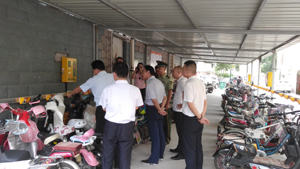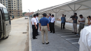 會議第一階段,市領(lǐng)導(dǎo)、消防大隊領(lǐng)導(dǎo)及各鄉(xiāng)鎮(zhèn)街道、物業(yè)公司乘車一同前往特變·森林花園、中心花園、府東新苑這三個電動車充電樁車棚試點小區(qū)。