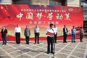 9月26日上午九時,“慶祝建國69周年暨改革開放四十周年——中國夢·勞動美”全市職工書畫展開幕式在新泰文化藝術城隆重舉行。本次書畫展覽為期5天,由新泰市總工會主辦,山東澤華置業集團有限公司承辦,新泰市文聯、新泰市書法家協會、新泰市美術家協會協辦。